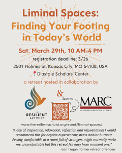 To provide a space for healing, reflection, and community, The Resilient Activist is partnering with MARC and the Greater Kansas City Area Environmental Justice Community to host a transformative, day-long retreat.